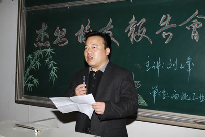 (本网讯)10月11日下午, 西安工业大学材料与化工学院特邀国家杰出青年基金获得者、西北工业大学教授、我校92级金属材料专业刘峰校友为材化学院2012级新生做了一场“从西工学子成长为国家杰青的历程和感悟”的专题报告。报告会由材化学院副院长坚增运主持。