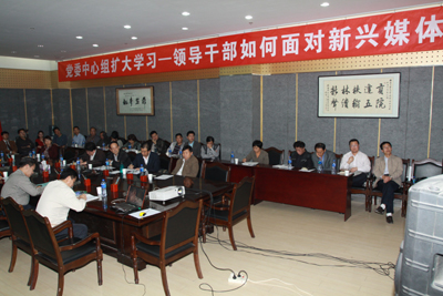 (本网讯 )10月11日下午,西安工业大学党委理论学习中心组召开扩大会议,围绕“领导干部如何面对新兴媒体”进行学习、讨论。校党委中心组成员、正处级干部及各二级单位新闻联络员参加学习。