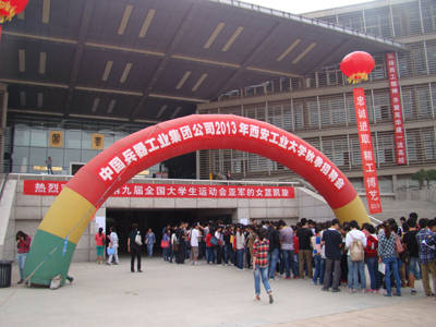(本网讯)9月20日上午,中国兵器工业集团公司2013年西安工业大学专场招聘会在未央校区举行。中国兵器工业集团公司(世界500强企业之一)所属的中国兵器工业试验测试研究院、辽沈工业集团有限公司、西北工业集团有限公司、北方特种能源集团有限公司、东北工业集团有限公司、晋西工业集团有限责任公司等子集团和下辖成员单位近50家企业及研究院(所)应邀出席了本次招聘会,近两千名有志于献身服务国家兵工事业的毕业生参加了招聘。