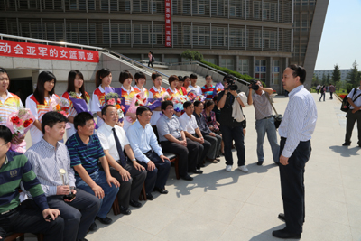 校党委书记赛云秀在讲话中对女篮取得的优异成绩表示祝贺和感谢,拼搏精神令人振奋和鼓舞。