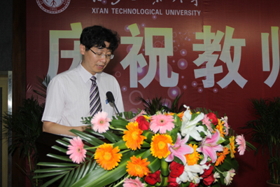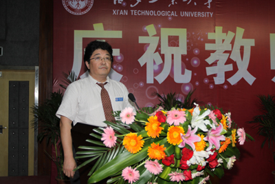廉振民校长讲话,他首先向全体教职工致以节日的祝贺,并简要回顾了一年来学校取得的巨大成绩:学科建设取得了新进展,顺利通过了博士学位授予单位立项建设中期检查,成为国家“卓越工程师教育培养计划”试点高校,所有专业实现了在陕的一本招生,省政府与中国兵器工业集团公司共建西安工业大学签约,进一步完善了未央校区作为主校区的功能建设,完善了岗位绩效工资考核制度,师资队伍建设取得重大成绩,学校获批陕西省军工保密资格二级认证等各项工作都按照学校“十二五”发展规划有序开展。廉校长在讲话中指出:下一步学校将继续大力推进“128”学科建设工程,顺利通过博士学位授予单位立项建设验收,加快学校建设省属高水平重点大学的步伐,不断增强学校办学实力与特色,扩大学校影响力。最后,廉校长对全体教师提出三点希望:一是修身立德,成为一个高尚的人;二是开拓践行,成为一个受学生欢迎的优秀教师;三是勤奋笃学,成为一个具有专业修养的人。并号召全体教师将个人价值与社会需要统一起来,将理想信念与职业理想统一起来,加强师德修养,全面提高教学与科研能力,以实际行动迎接党的十八大胜利召开。
