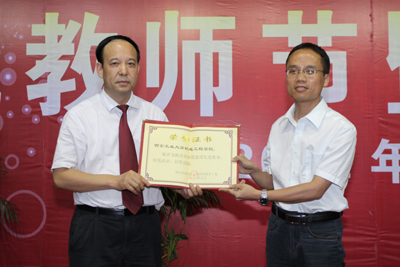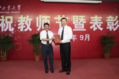 在随后的表彰仪式中,于孟晨副书记宣读了上级关于表彰省级师德先进集体、先进个人的通知。机电学院荣获 “陕西省普通高校师德先进集体”称号、体育学院刘鹏老师荣获“陕西省普通高校师德先进个人”称号。党委书记赛云秀、校长廉振民分别给他们颁发证书,学生代表敬献了献花。