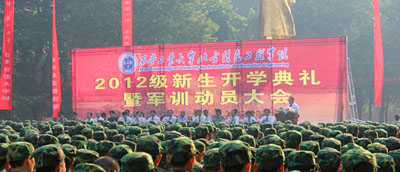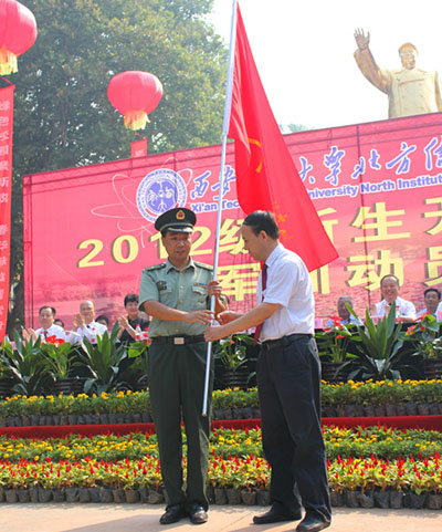 (本网讯)9月5日上午,西安工业大学北方信息工程学院2012级新生开学典礼暨军训动员大会在学校广场举行。2012级2800余名新生共聚一起,喜迎新征程。西安工业大学党委书记赛云秀,校长廉振民,副校长、北方信息工程学院董事长、院长张君安,校纪委书记许尚年,西安工业大学党办、校办主任王辉强;第二炮兵工程大学教练团总工程师甄占昌上校、北信学院军训团团长孙开磊、北信学院军训团参谋长付学汇;北信学院党委书记简林根,北信学院董事副院长李建安、薛虹,北信学院副书记杨灏,财务总监王培华,总务长张玮开学典礼,各职能处室领导,各系(部)主任,教师代表,辅导员等参加了开学典礼。典礼由院长办公室主任张亚权主持。