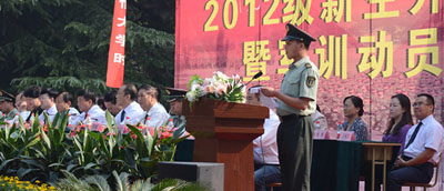 第二炮兵工程大学教官道俊代表参训教官表示将在后面的训练中以良好的军人形象带领参训学生,以过硬的军事本领引导参训学生,最终实现让学生掌握一定军事知识和技能,培养学生雷厉风行的军人作风和高尚的道德情操。
