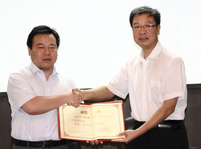 仪式上,材化学院副院长王正品向刘峰教授介绍了我校及材化学院发展状况,副院长坚增运介绍了刘峰教授在科学研究上取得的优异成绩。刘建勋副校长与刘峰教授签订聘任协议并为其颁发 “客座教授”聘书。刘建勋副校长讲话指出:广泛引入社会的优质资源、聘请有真才实学的优秀人才担任我校的客座教授,将是我校努力提高教育教学质量、优化教师队伍结构、形成理论知识与实践知识相结合的教学体系的有力保障。刘峰教授长期从事科学研究,有丰富的实践经验和理论水平,作为我校的客座教授,他渊博的知识和丰富的社会经历将给我校老师和学生们留下宝贵的精神财富,为学校的发展带来新的力量。