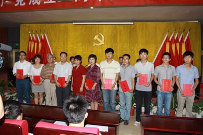 校领导分别给创先争优活动党员先锋岗代表、创先争优活动先进党组织代表、2011年度党建评价工作优秀单位代表、先进基层党委(党总支部)代表、先进党支部代表、教职工优秀共产党员、学生优秀共产党员代表颁发了证书和奖牌。