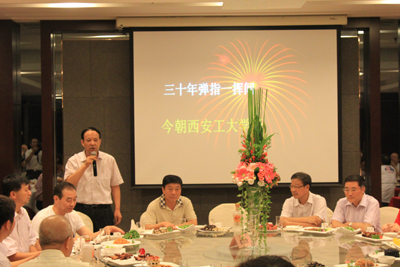 党委书记赛云秀、校长廉振民、副校长刘建勋分别讲话,代表全校师生员工,向与会老教师和校友返回母校举行聚会活动表示热烈欢迎,并介绍了母校的发展情况和骄人成绩,30年来,学校的各项事业迅猛发展,更名为西安工业大学,未央校区的建设,获批为博士学位授予立项建设单位……回顾过去,心潮澎湃,展望未来,信心满怀。当前,全校教职工正以只争朝夕的精神,改革创新的魄力,勇攀高峰的毅力,朝着建设高水平大学的发展目标奋勇前进。希望校友们,一如既往地关注和支持母校的发展,共铸母校辉煌。