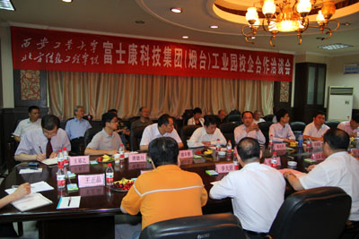 (本网讯)5月18日,富士康科技集团(烟台)工业园副总经理郑光杰、夏克平经理、陈锡聪经理、游丰檀副经理、王金清专案经理、唐德川课长等一行9人来校,就卓越工程师计划、专班人才培养、在职人员培训、电子商务等方面与我校进行深入研讨。学校教务处、学生处、工程训练中心、各学院、研究生部、以及北信学院、高职学院等部门负责人出席了会议。