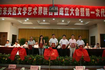 西安工大艺术与传媒学院作为特邀团体会员,参加了未央区文联第一次代表大会。会上,未央区人大常委会副巡视员牛青盟当选为区文联主席,艺术与传媒学院院长于唯德等17人当选为未央区文联副主席。艺术与传媒学院副院长王若鸿代表学院,与未央区文联签订了《关于建立大学生社会实践教学基地的合作协议》。