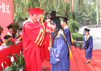 全体硕士毕业生依次走上主席台,校长廉振民和副校长刘卫国为硕士毕业生颁发了学位证书、拨正流苏,共同见证他们求学历程中的关键时刻。