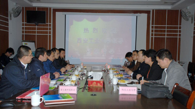 (本网讯)4月12日,西安工业大学副校长、北方信息工程学院董事长张君安一行5人到富士康科技集团(烟台)工业园进行调研,北方信息工程学院副院长薛虹、机电工程学院副院长赫东锋等随行考察。
