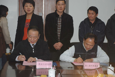 最后,双方签署了“共建人才培养基地协议”、互赠“人才培养基地牌匾”、互赠锦旗并合影留念。