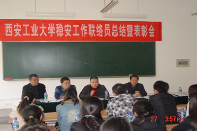 (本网讯)为表彰在学校稳定安全工作中做出较大贡献的联络员,激发广大联络员的工作热情,西安工业大学保卫处于3月27日下午在未央校区召开“西安工业大学稳安工作联络员总结暨表彰会”。保卫处主要科室负责人、未央校区治安预防一科全体机关人员及来自学校各院系的44名稳安工作联络员参加了会议。