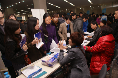 上午九点,图书馆里众多毕业生手持精心准备的简历,满脸自信地穿梭于人流之中,现场气氛热烈。经过北信学院招生就业处多方努力邀请到省内外近30家用人单位前来招聘,主要涵盖市场营销、会计、管理、材料、电子、网络、科技、新闻、计算机等专业领域,其中不乏西北电力、环球资源、西安教育电视台、上海三上国际贸易有限公司、德飞新能源科技有限公司等知名企业。据了解许多招聘单位表示,前来应聘的学生大部分理论知识扎实,社交能力较强。他们还表示对一些与社会接触过、参与过社会劳动的学生非常青睐。一位在招聘会上成功达成用人意向的同学表示:一忌遍地撒网,明确职业方向;二忌眼高手低,摆正心态,从基层作起,这样才能具备强大的后续发展能力。