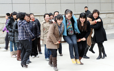 表彰大会结束后,进行了“三八节”趣味活动,400余名女教职工参加了跳绳、抬花轿等趣味比赛。校园里充满了欢声笑语,洋溢着节日的喜悦,展现出一片和谐的氛围。