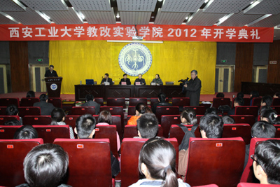 (本网讯)3月2日下午,西安工业大学教改实验学院2012年开学典礼在未央校区图书馆报告厅举行,副校长、教改实验学院院长张君安,校纪委书记许尚年出席。教务处、学生处领导,教改实验班所属学院(中心)院长(主任),各学院总支书记、教学院长、工业中心副主任,教改实验班专业负责人及教师代表,教改实验班辅导员及全体学生,各学院2011级学生代表参加了典礼。开学典礼由校教务处长、教改实验学院副院长范新会主持。