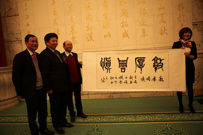 研讨会后,于唯德院长代表企业家思想俱乐部向魏建国、马灿荣等领导赠送了书法作品。