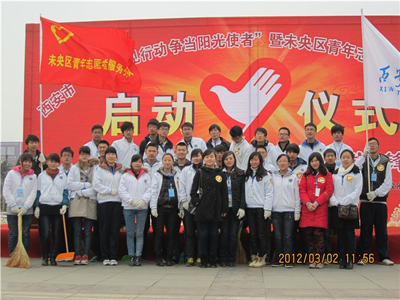 (本网讯)3月5日是全国第49个“学雷锋纪念日”。2日上午,由西安市文明办、共青团西安市委、共青团未央区委联合举办的西安市“学雷锋见行动争当文明使者”和未央区青年志愿者服务活动的启动仪式在西安大明宫建材家居广场举行,未央区教育、卫生、交通、街道办等系统的志愿者代表共计400余人参加了仪式,西安工业大学学生会40余名学生代表参加了此次活动。
