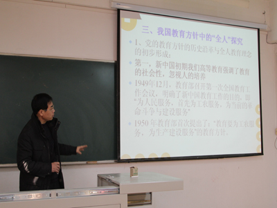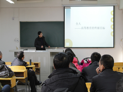 (本网讯)为加强教师之间的交流,推动西安工业大学思政部教学、科研水平的进一步提高,展示教师在学术领域的精彩学术观点,思政部特举办 “精彩学术观”学术大讲堂。12月16日,大讲堂第三讲在金花校区6-206教室开讲,由田亮教授主讲题为“全人—高等教育的终极目标”学术报告,思政部全体教师及研究生参加了此次活动。