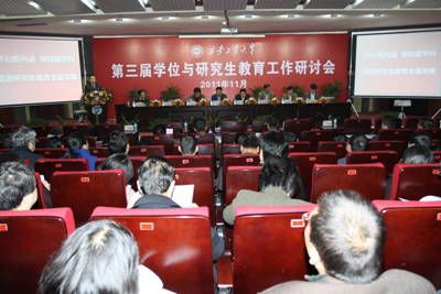 (本网讯)为适应我校研究生教育在办学层次提高、招生规模扩大、培养模式多样化的新形势,进一步总结和交流研究生教育经验,研讨研究生培养的创新模式,使我校顺利通过博士点立项建设,西安工业大学第三届学位与研究生教育工作研讨会于11月3日在未央校区图书馆一楼报告厅举行。党委书记赛云秀、校长廉振民、党委副书记丁养斌、于孟晨、纪委书记许尚年、副校长张君安、刘卫国、陈桦及各学院(部)党政领导、职能部门负责人、部分导师代表和研究生代表等参加了研讨会。