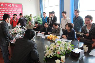 比赛按照模型的宏观造型、微观造型、单位荷重的加载量进行初评,入围的前10名模型进行最后答辩。在各参赛组负责人介绍自己模型的设计特点后,评委针对参赛作品的造型特点、杆件制作、节点处理方法等方面进行了提问,随后进入到紧张而扣人心弦的模型加载环节,有些模型不幸失败,更多的则经受住了考验。