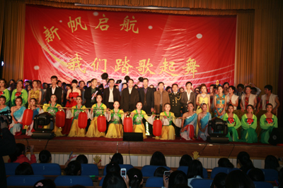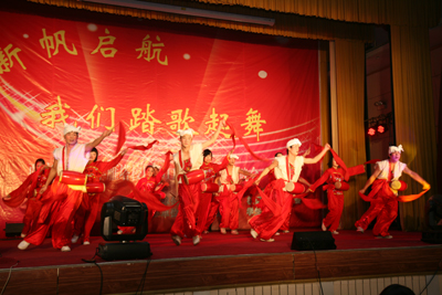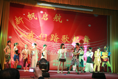 舞蹈《新贵妃醉酒》、《俏兰花》结合古典与现代,让观众为那曼妙的舞姿而倾倒;《快与慢》诙谐幽默,赢得了阵阵掌声;校区团委老师张乐芬的《盛世中国》不仅唱出了祖国62年的精彩历程和辉煌成就,更唱出了老师们对新同学寄予的期望----努力学习,报效祖国。晚会在师生们的歌声和祝福声中圆满结束。