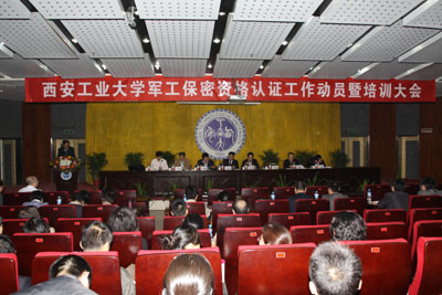 (本网讯)9月26日下午,西安工业大学在未央校区报告厅举行新一轮军工保密资格认证工作动员暨培训大会,部署保密资格认证具体工作,并邀请陕西省国家保密局保密认证专家范玉萍研究员进行保密教育培训。党委书记赛云秀、校长廉振民、党委副书记丁养斌、于孟晨、副校长张君安、刘建勋、刘卫国、陈桦出席会议,全校副处级以上领导干部、全体涉密人员、全体军工项目组成员、参与军工项目研究生300余人参加了会议。