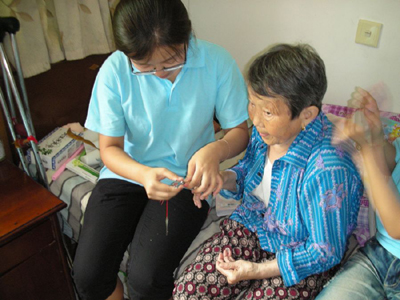 7月14日,学工部社会实践小组一行12人带着满满的爱心,提着沉甸甸的生活用品、水果来到户县老年福利中心,看望了在这里的生活的50余名老人。到了敬老院,同学们立刻动手帮助居住在这里的老人打扫房间,整理衣物,有的同学主动还给老人洗头,剪指甲。同学们把新鲜的瓜果送到老人手中,陪他们聊天,老人们高兴地说,今天特别开心,看到这些大学生就像自己的孩子一般。