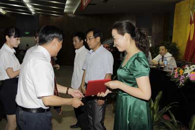 校党委副书记、校长廉振民同志宣读学校党委表彰决定。校党委副书记丁养斌同志宣读学校党委创先争优表彰命名决定。之后,校领导向获奖的集体代表和个人颁奖。