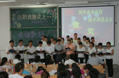 大会在雄壮的国歌声中拉开帷幕。在领誓人学院党委副书记黄越同志带领下,学院全体老党员和新党员一起共同庄严宣誓。学院党委书记曲敏,党委委员、院长李纯青分别宣读了校、院两级对优秀党员和先进支部的表彰决定。院领导为获得“教书育人青年党员先锋岗”和“爱岗敬业青年党员先锋岗”称号的教师党员授牌,学生支部书记为获得“全面发展党员先锋岗”称号的学生党员授牌。受表彰的教师代表、学生代表和2011届毕业生党员依次发言,抒发内心的激动。曲敏书记向全体党员致以节日的问候,并对大家今后的工作和学习提出了更高的要求。最后,各系学生和教师党员共同奉献的一个个精彩的文艺节目将大会推向高潮。大会在庄严的国际歌中圆满结束。