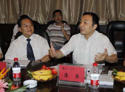 电信学院院长雷志勇教授汇报了计算机科学与技术学科的建设情况,并回答了潘泉专家的提问。与会教授还结合相关课题,向专家演示了项目成果。