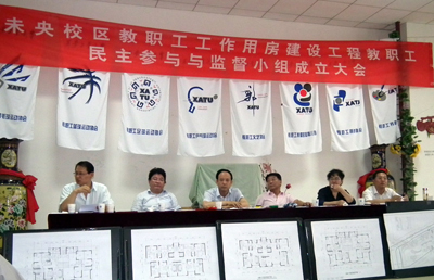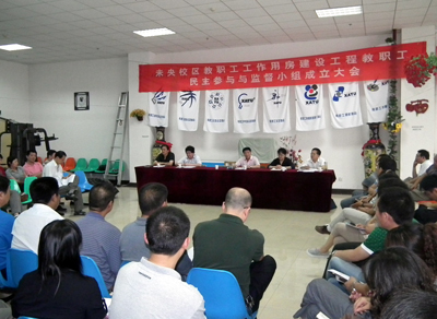 廉振民校长首先讲话,他说明了学校启动教职工工作用房工程建设的情况和推进校务公开的决心,表明了对教职工关心的住房建设工作强化民主管理与欢迎教职工参与监督的态度。陈桦副校长和基建处处长王玉林分别介绍工程进展情况,并就教职工关心的一些问题进行了解答,表示一定会保质保量完成建设工作。校工会主席徐雪芹介绍了监督制度制定情况与内容。工会副主席朱晋中宣读了参与监督小组名单。参与监督小组共有25人组成,组长由校工会副主席朱晋中担任,组员是由教代会房务工作委员会成员与各基层工会推荐组成。于孟晨副书记对监督小组开展工作提出了明确要求,要求小组成员认真履行职责,不负所托,积极沟通,发挥桥梁纽带作用,努力学习提高,做好监督工作。监督小组成员代表徐均琪副教授发言,他代表监督小组全体成员表示,将克服困难、认真履行职责,做到对教职工负责、对学校负责,切实起到教职工与学校、与主管部门之间的纽带联系作用。