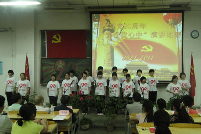 比赛伴着《国际歌》拉开帷幕,主持人介绍了本次活动的评分标准、到场评委和嘉宾之后,比赛以光电系选手张铭的诗朗诵《你一定会伟大坚强》开场,诗歌带我们走进历史的长河。教工组杨杰老师的《铭记党史 感恩今天》带我们回顾了祖国五千年上下的文明,近代的屈辱史,发展史;管系选手林晓燕《我爱这土地》让我们看到赤子们对祖国的依恋;艺术设计系的合唱《国家》,用手语传递着:祖国就是家;《党旗党魂》,李燕老师激昂的演讲将比赛推向高潮;李源阳同学《中国人不跪的人》,表明了我们当代青年要为祖国奉献的决心;比赛在陈博、赵来鹏老师的合唱《祖国万岁》中落下帷幕。
