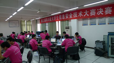 信息安全技术大赛在四川省已经成功举办了两届,吸引了越来越多的高校参加。本届大赛第一次邀请四川省外高校参加,经大赛组委会讨论,外省高校除参加所有参赛队伍的总排名外,还进行单独排名。今年参加决赛的有四川省内的20所高校(共36支队伍),以及来自四川省外的4所高校(共5支队伍)。川外高校中,除我校外,其余3所均为211重点院校(杭州电子科技大学、福州大学、南昌大学)。