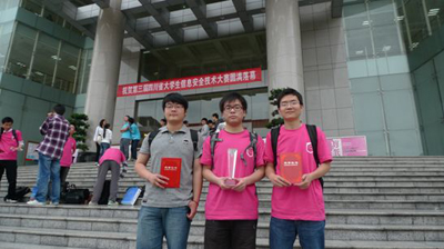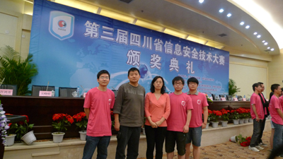我校计算机学院信息对抗专业07级本科生于乐、喻磊、黄传鑫等3位同学,在4月底组队,经过紧张的集训后,在喻钧、唐俊勇两位老师的带领下于5月19日赴成都参赛。虽然是第一次参赛,没有任何的比赛经验,但面对经验丰富、强手如云的参赛选手们,3位同学的心理素质很好,很放松,凭着扎实的理论功底、顽强的拼搏精神、以及良好的团队协作,获得了优良的比赛成绩。在决赛的41支队伍中,获得总排名第18名,川外队伍排名第2名的好成绩,荣获本次比赛的二等奖。成绩超过多支来自211院校信息安全、信息对抗专业的参赛队伍。