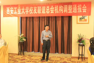通报会由西安工业大学副校长、校友联谊总会副理事长刘建勋主持。刘建勋副校长对校友联谊总会近期的运行情况向与会领导及校友进行了说明,对此次通报会的整体情况进行了通报。国际交流与对外合作处处长、校友联谊总会副理事长路金龙向与会领导、校友们详细通报了校友联谊总会机构调整、人员变更情况。机构调整名单在与会领导与校友们的热烈掌声中予以通过。