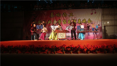 (本网讯)5月4日晚,由校团委主办,大学生艺术团器乐部承办的“奏响西工”西安工业大学器乐演奏晚会在图书馆前举行。