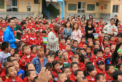活动仪式结束后,在该校操场,附小外籍教师和英语教师共同为全校师生上了一堂精彩的外语课。于孟晨副书记、甘泉县委副书记李满套等领导一同观摩了这节课。