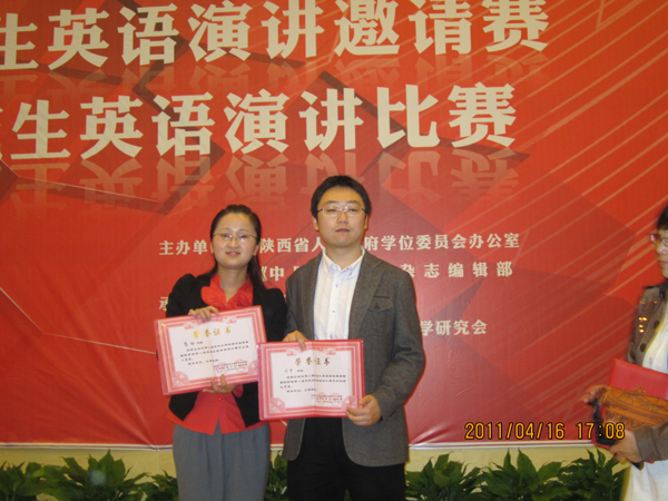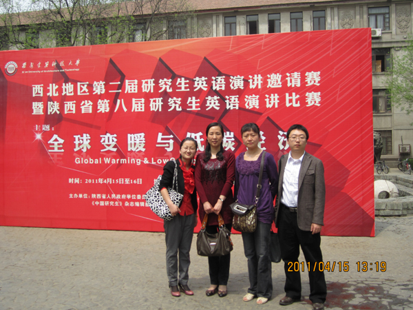 (本网讯)西北地区第二届研究生英语演讲邀请赛暨陕西省第八届研究生英语演讲比赛于4月14日至17日在西安建筑科技大学举行,共有来自西北陕西、甘肃、宁夏、新疆、青海、内蒙六省(区)64个研究生培养单位82名研究生参加了比赛,我校参赛选手获佳绩。