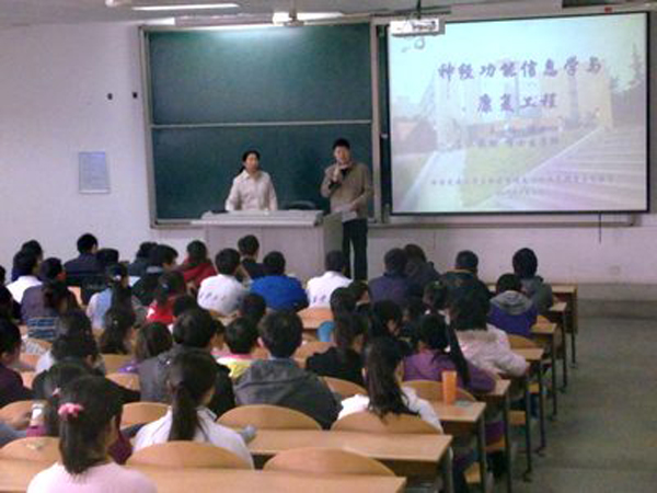 (本网讯)4月6日下午,电信学院特邀西安交通大学的王珏教授在C103做了神经功能信息与康复工程专题报告会。电信学院07,09,10级生物医学专业的学生参加了报告会。
