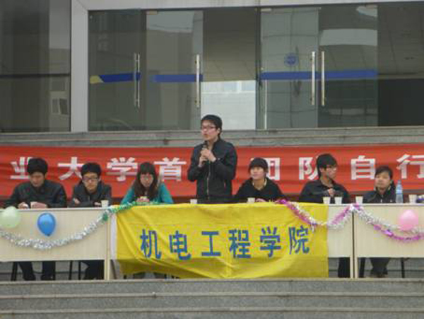 (本网讯)3月18日中午,由西安工业大学机电工程学院承办的“西安工业大学首届团队自行车大赛”在未央校区AD广场举行。