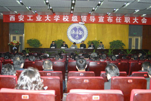 (本网讯)3月2日下午,西安工业大学校级领导干部任职宣布大会在未央校区图书馆报告厅举行。中共陕西省委组织部副部长冯力军,省委教育工委副书记、省教育厅副厅长梁宝林,省委组织部宣教干部处处长朱晓渭,省委教育工委、省教育厅干部人事处处长高晶华,以及我校全体校级领导出席了大会,校党委委员、纪委委员、全校处级领导干部、正高级专业技术人员、校学术委员会委员、工会委员会委员、各民主党派负责人及市级以上人大代表和政协委员等参加了会议。会议由省委教育工委副书记、省教育厅副厅长梁宝林同志主持。