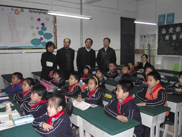 (本网讯)12月2日,陕西省教育厅语言文字工作处处长王林生、市教育局基教一处处长田征、市教育局语言文字委员会办公室副处长王焕荣、碑林区教育局总督学张黎明、碑林区教师进修学校校长和巧云、碑林区语言文字工作委员会办公室张庆玫等一行8人莅临西安工业大学附小,对创建省级语言文字规范化示范校工作进行评估验收,附中校领导热情欢迎评估组的到来。
