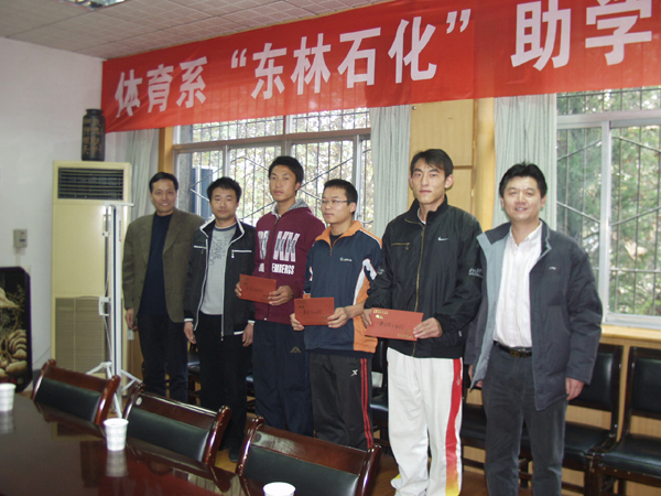 (本网讯)11月17日下午,西安工大体育系举行了“东林石化”企业助学金颁奖仪式,设奖单位东林石化集团董事长张栋、东林石化办公室主任卓世锋以及体育系各级领导出席了颁奖仪式。