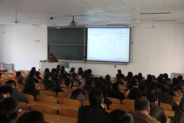 培训前,人事处副处长易超做了动员讲话,强调了教职工计算机技能培训是学校教职工素质培训的重要组成部分。讲座邀请计算机学院副教授主讲Excel软件的应用。王中生从Excel软件的基础知识和基本操作讲起,讲解了地址引用,公式、函数应用, 表格边框设置以及数据清单与排序,数据筛选,分类汇总,数据透视等内容。培训讲座结束后,很多参加培训的人员和王老师进行了现场交流。