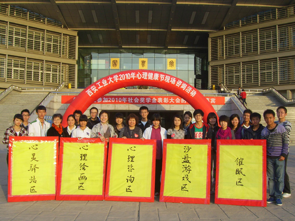 11月9日,光电学院承办的大型现场心理咨询活动在未央校区经纬广场举行。陕西新育心理培训学校十多位资深心理专家、心理咨询中心教师和各院系心育员老师参加了本次活动。活动现场开设了心灵驿站区、沙盘游戏区、心理绘画区、个体咨询区、催眠区共五个咨询专区。个体咨询区的同学与咨询师们深入交流,认真倾听专家的引导;沙盘游戏区的同学凝神静气,在柔软亲切的沙堆里感悟自己的内心世界;绘画区的同学更是积极踊跃,拿上自己的绘画作品排成几列长队等待老师的独到分析;心灵驿站区生动的心理健康百科知识吸引了许多同学驻足观看。温馨放松的现场环境、新颖有趣的心理游戏以及热情专业的咨询服务,使同学们满怀兴趣而来,深有所悟而归。