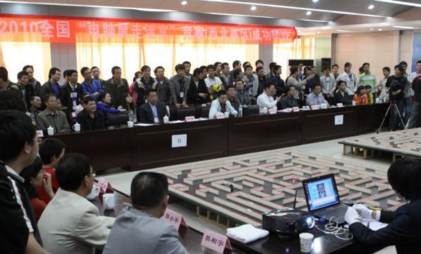 (本网讯)由中国计算机学会主办,中国计算机学会嵌入式系统专业委员会、陕西省计算机学会承办的“2010全国电脑鼠走迷宫竞赛”西北赛区比赛于10月17日在西安邮电学院长安校区举行,来自西北地区18所院校的54支代表队参加了比赛。西安工业大学组织了四只代表队参赛,并邀请曾多次指导学生参加全国性大赛的电信学院秦刚副教授、工业中心祁立军老师作为指导教师。17日上午,电信学院信息与通信工程系主任雷斌副教授带队来到比赛现场,电信学院高嵩副院长亲临助阵。参赛队员不负众望,最终获得了一个一等奖、一个二等奖、两个优秀奖的优异成绩。