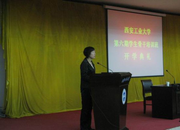 (本网讯)10月13日晚,西安工业大学第六期学生骨干培训班开学典礼在未央校区图书馆报告厅举行,校党委副书记丁养斌出席了典礼。