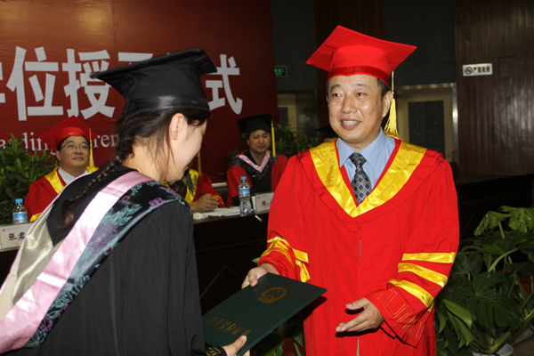教务处处长范新会宣布了2010届毕业生学位证书和毕业证书授予情况。