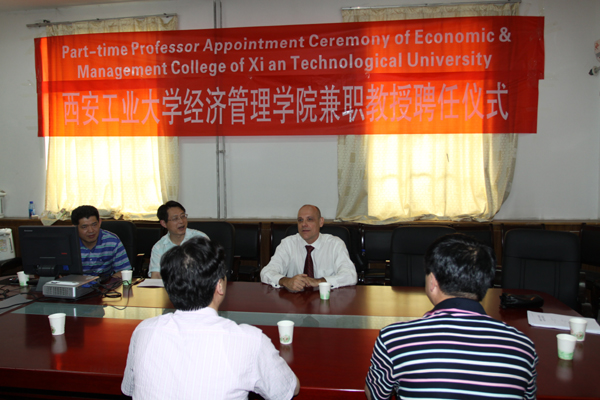 (本网讯)6月24日下午,西安工业大学经管学院举行斯洛文尼亚卢布尔雅那大学Jaro Berce兼职教授聘任仪式,副校长刘卫国教授出席了聘任仪式。经管学院、国际交流处领导以及经管学院教师代表参加了了聘任仪式。